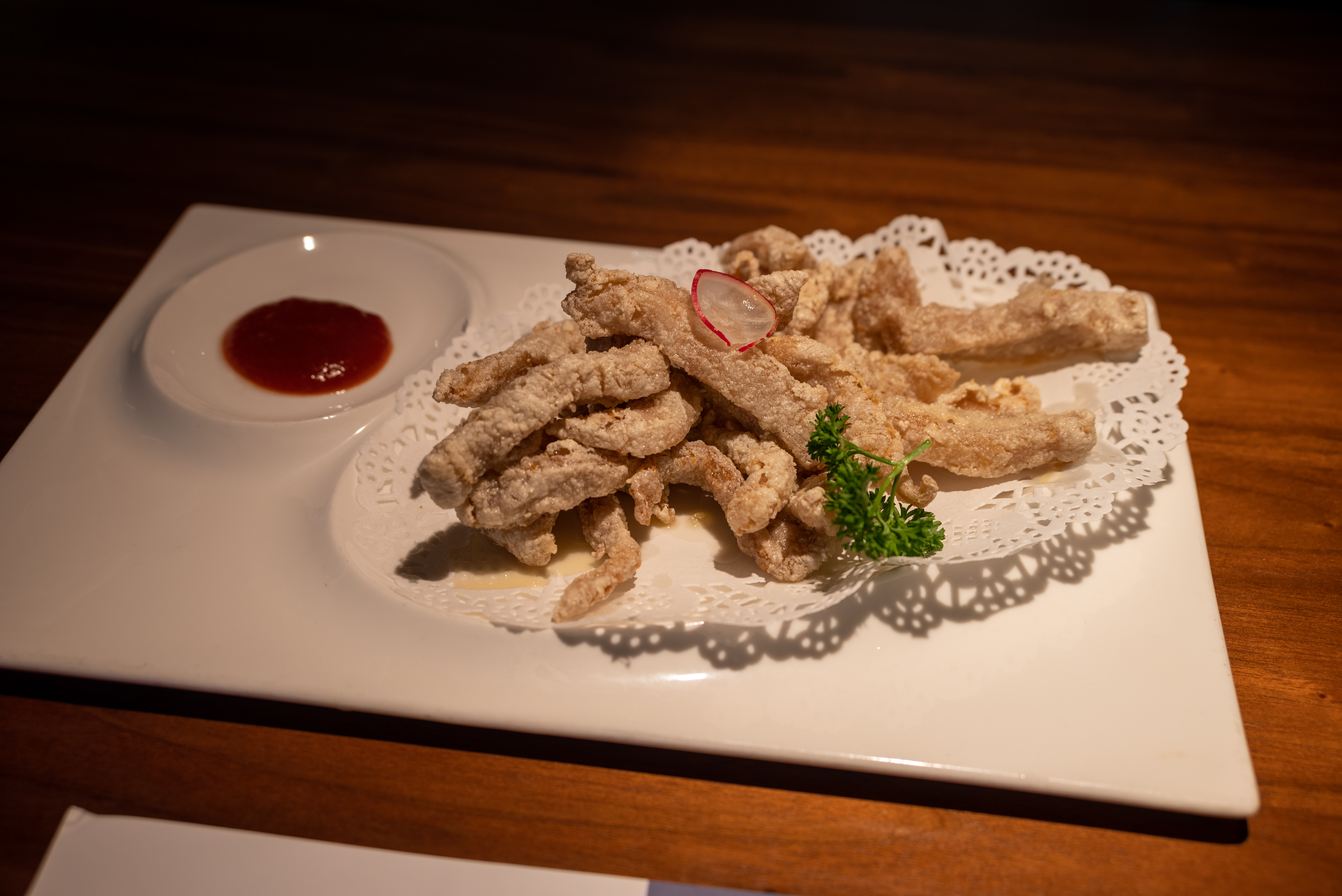 我点的菜是润饼和醋肉。润饼没有很特别的,可以理解为福建版本的绿色春饼,春饼本身是凉的。配的主菜也没太多特色,基本上就是卷心菜炒肉丝,然后旁边放了一些肉松,花生碎,海苔一类的小配菜。不过相比于北方的春饼配菜的咸度会低一些,可能主要来源于虾干而没有额外加盐。醋肉则是强烈推荐。这家店的醋肉可以近似理解为糖醋2口味的猪前腿肉天妇罗。炸的火候控制非常好,猪肉软嫩多汁,醋的酸味也让口感不会发腻。相比于之后吃过的另一次糖醋味小酥肉高到不知道哪里去了。