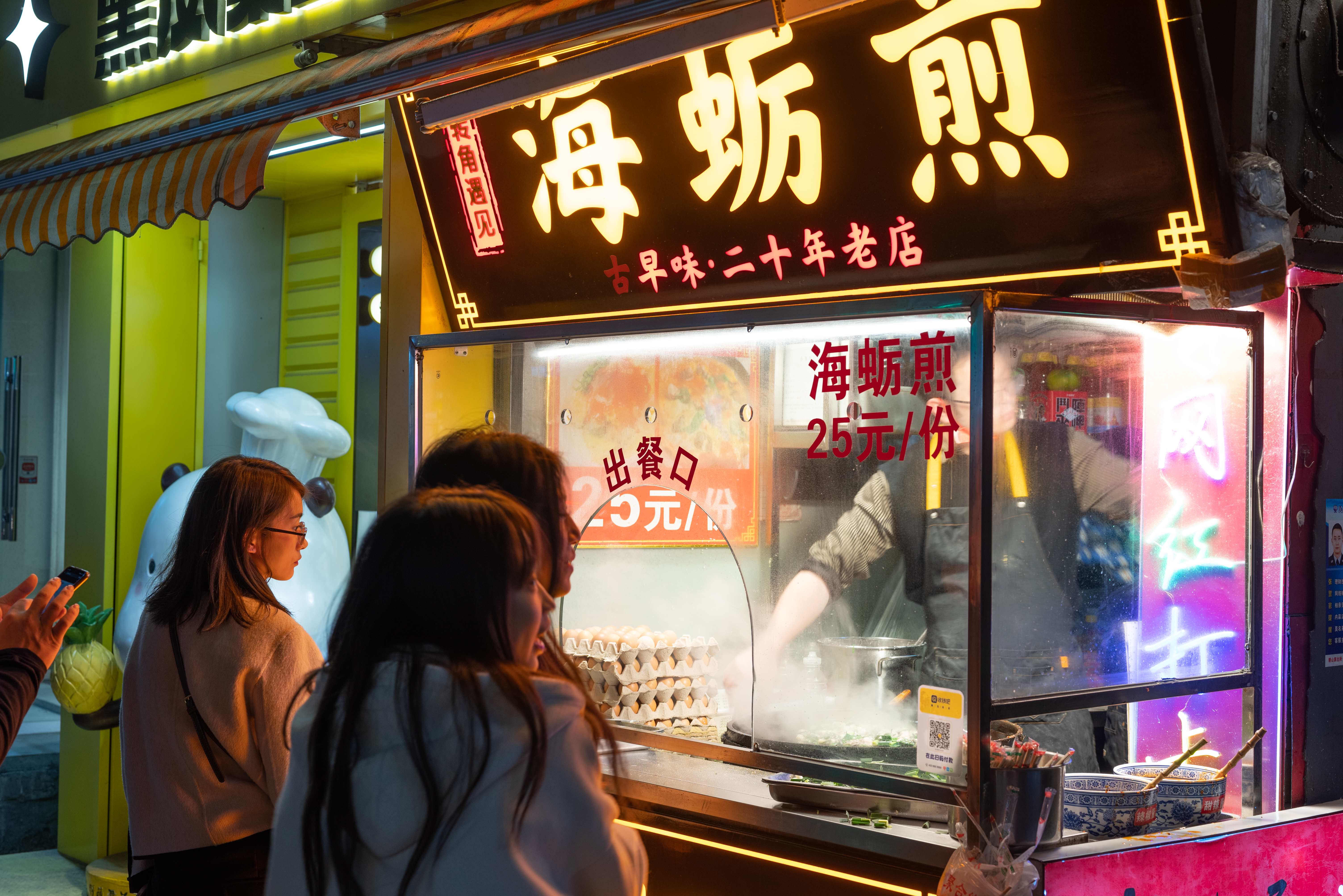 沙坡尾是所谓的”潮流街区”,会卖一些新潮的文创,并且有一些适合拍照和打卡的布景。也许可以拍拍夜景,但来这边买东西属实没有必要。在沙坡尾附近还吃了海蛎煎和沙茶肉串。海蛎煎差不多是蚵仔煎的新皮肤,口感大差不差,可以就当去了隔壁省的士林夜市。沙茶肉串:和普通肉串没啥区别,本身腌制很重,已经吃不出太多沙茶味了。